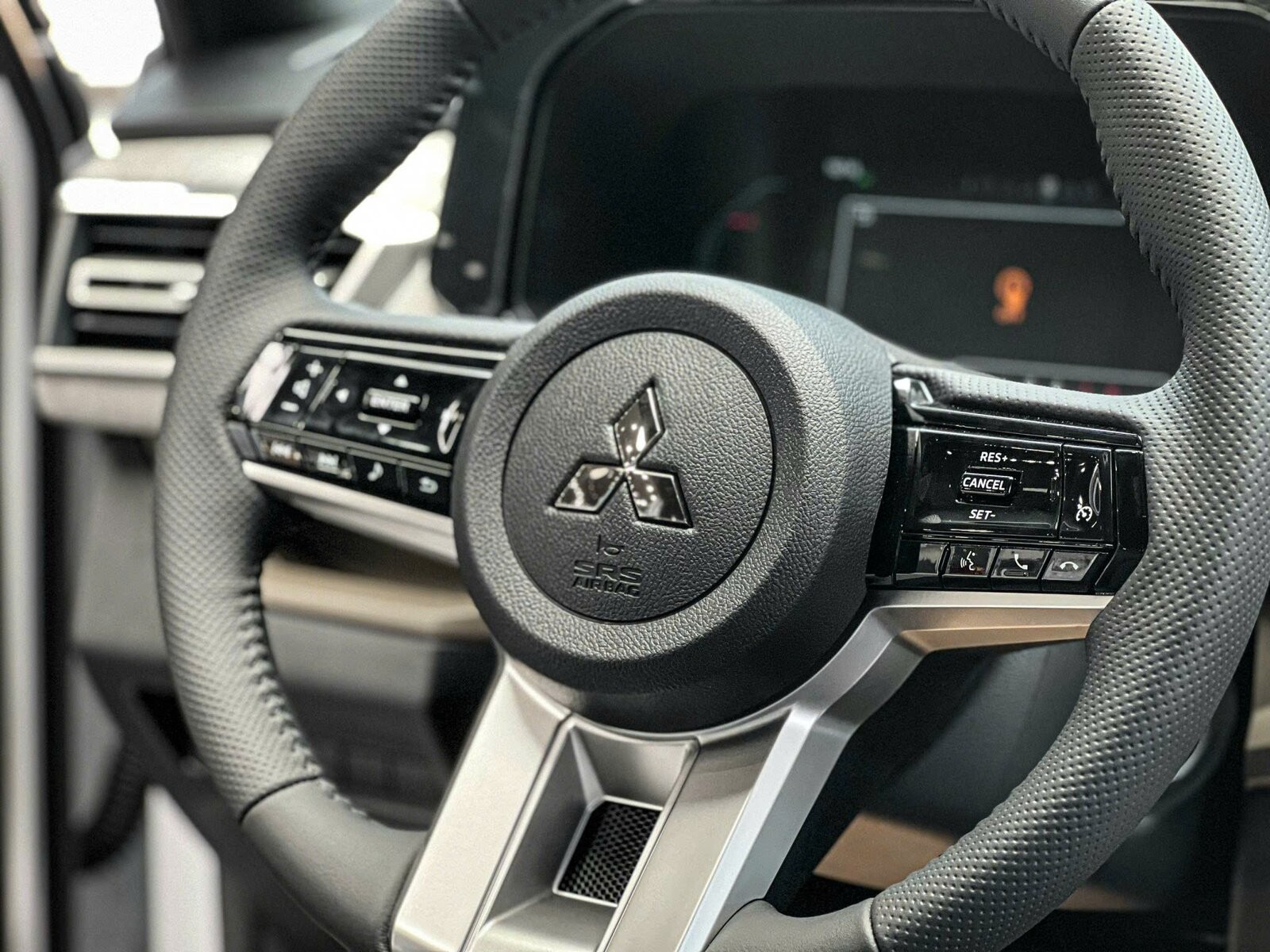 Vô lăng 3 chấu của Mitsubishi Xforce 2025 bọc da, vạt đáy D-cut. Các phím chức năng trên tay lái được bố trí độc đáo. Phía dưới là bệ cần số điện tử.
